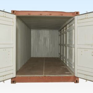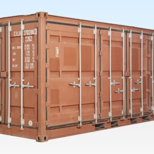 Este modelo dispõe de portas duplas na extremidade e portas duplas ao longo de um dos lados, permitindo uma abertura ampla e versátil. A estrutura em aço corten garante robustez e resistência às condições exteriores, sendo um contentor estanque ao vento e à água.