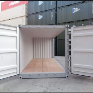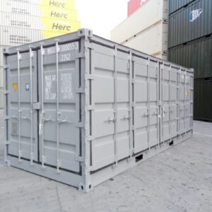 Contentor open side 20 pés novo (1 viagem), com acesso lateral completo e portas duplas, ideal para armazenamento e logística.